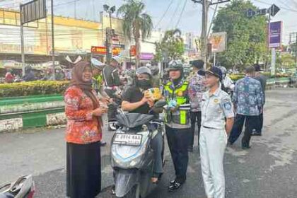 PATI — Satuan Lalu Lintas Polresta Pati menggelar kegiatan simpatik bersama para stakeholder dalam rangka Operasi Keselamatan Candi 2026 di Jalan Kolonel Sunandar, tepatnya di depan GOR Pesantenan Pat...