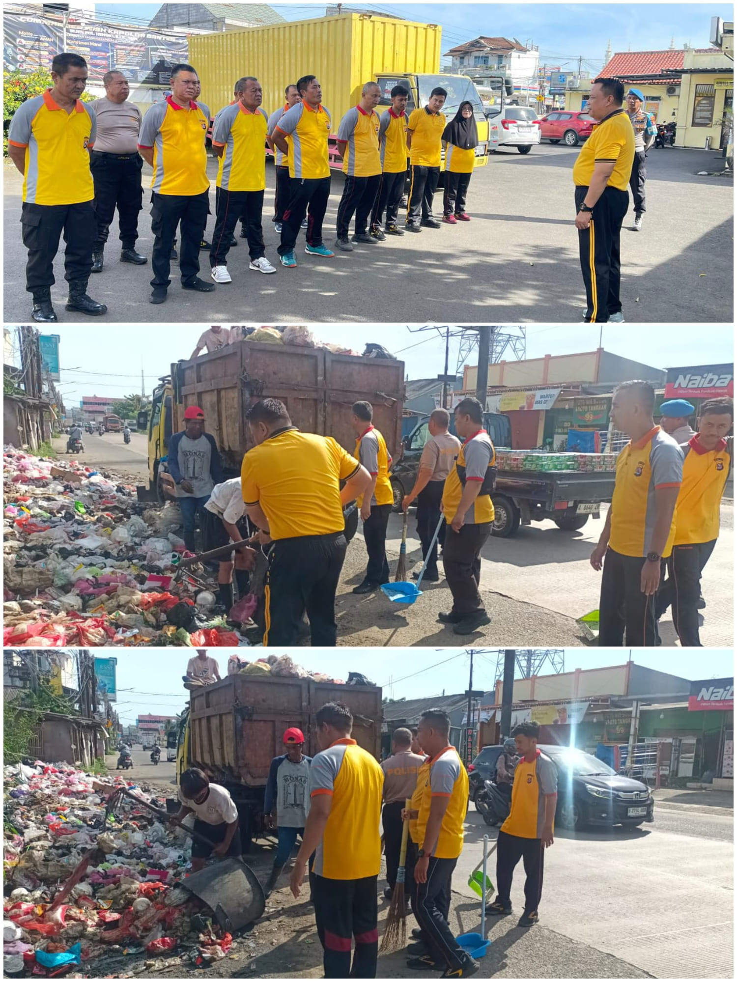 Kegiatan apel pagi dan olah raga dilanjutkan dengan kurvei lingkungan dengan membersihkan sampah yang berada di ruas Jalan Raya Pasar Kemis–Cikupa, tepatnya di wilayah Desa Sukaharja, Kecamatan Sindang Jaya, Kabupaten Tangerang,