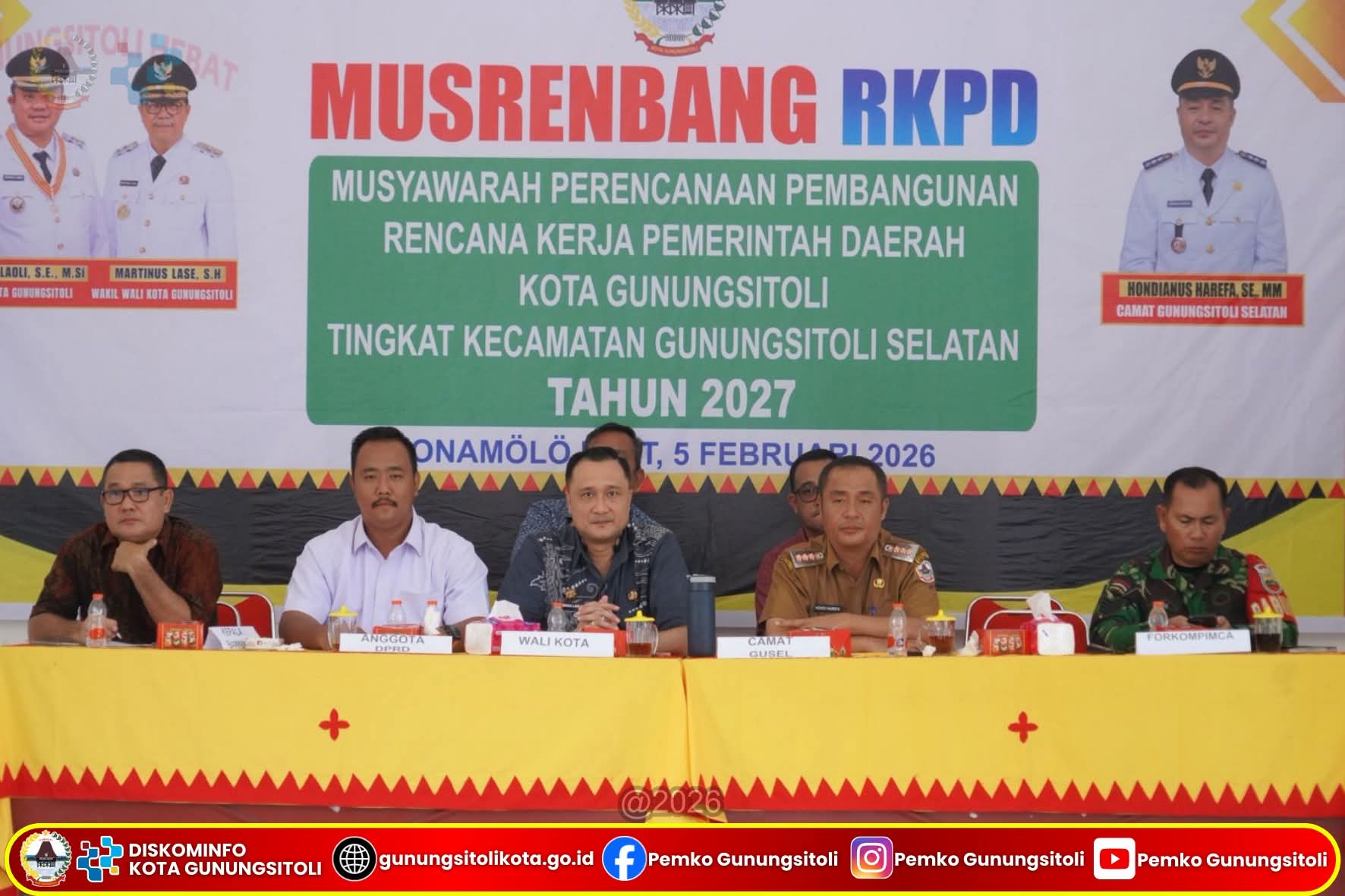 Gunungsitoli – Walikota Gunungsitoli yang di wakili oleh Sekretaris Daerah Kota Gunungsitoli Andhika P.. aoli S.stp,Msi. Menghadiri sekaligus Mengikuti kegiatan musyawarah perencanaan Musrenbang Tingkat Kecamatan Gunungsitoli Selatan Kamis 05/02/2026.