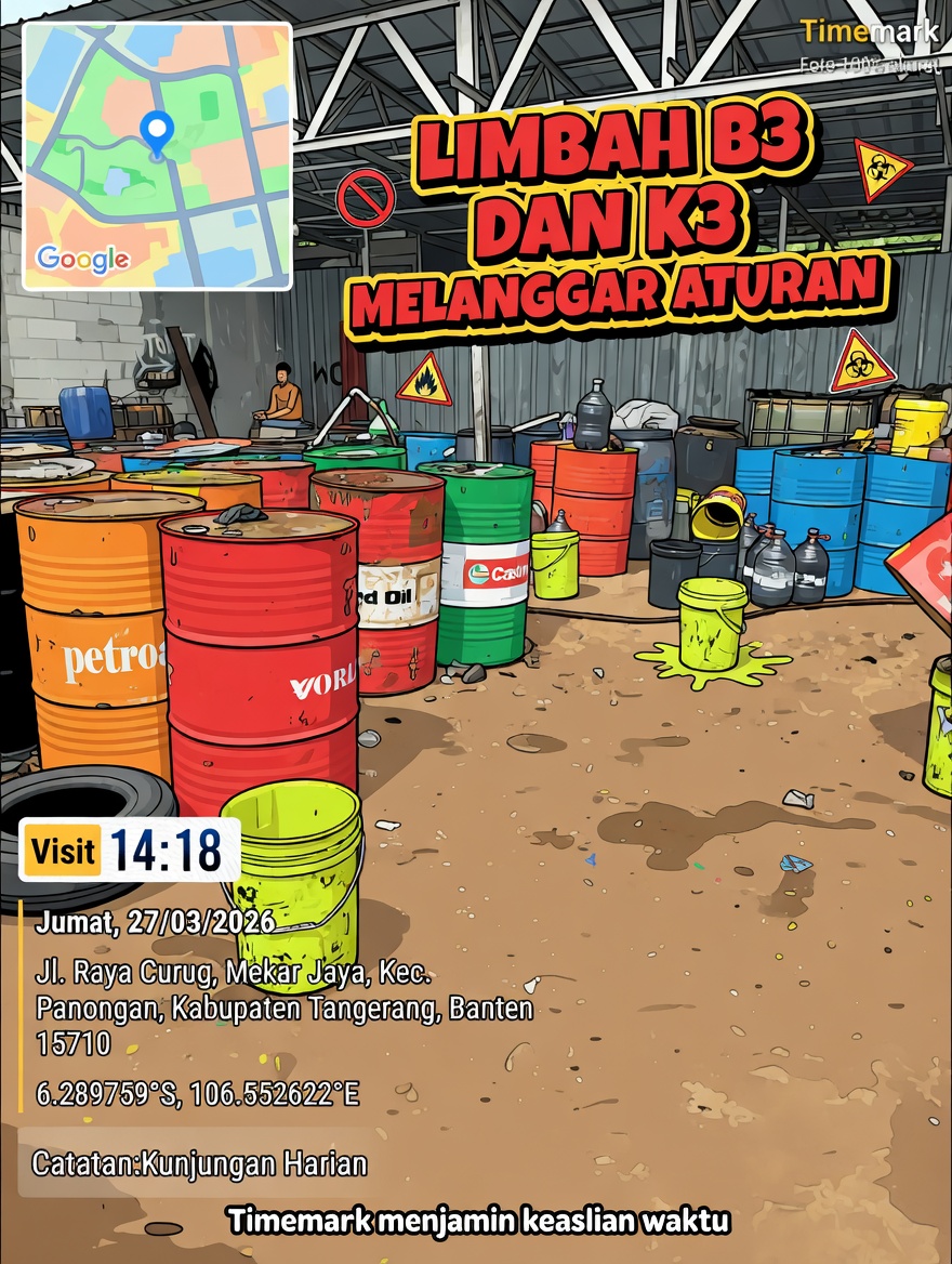 Kabupaten Tangerang – sebuah pergudangan yang diselimuti oleh seng kumuh di jalan Curug mekar jaya Kecamatan Panongan Kabupaten Tangerang Banten. Yang diduga menjadi tempat penyulingan oli bekas tidak memiliki izin. Pasalny...